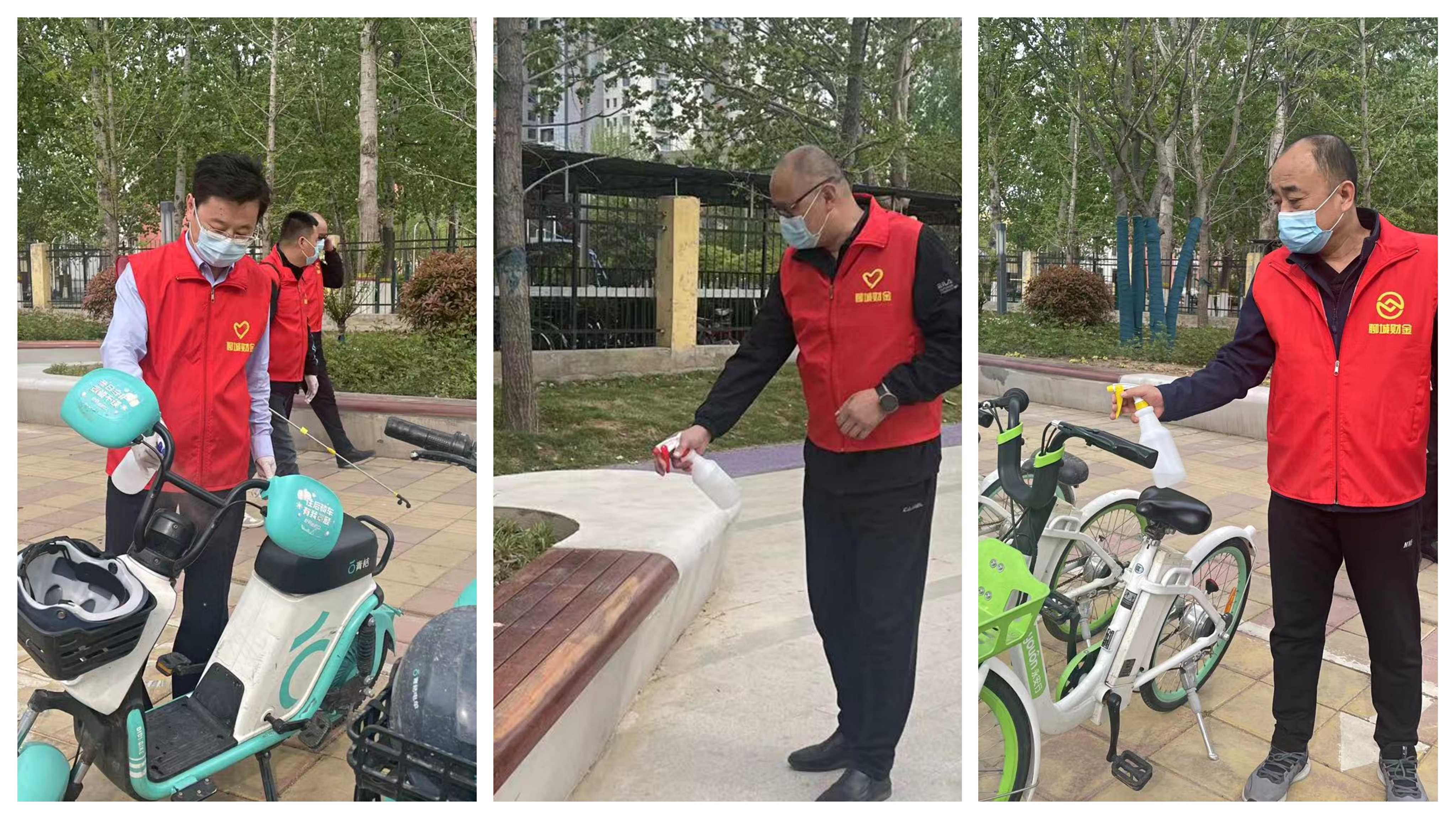 活動(dòng)開(kāi)展過(guò)程中,志愿者們嚴格按照防疫規定佩戴口罩、手套,做好自身防護,同時(shí)對過(guò)往群眾宣講疫情防控規定,提醒佩戴口罩和遵守防疫距離,勸阻扎堆聚集行為。有的同志手持酒精噴壺對路旁健身器材、坐椅、公共自行車(chē)等公共設施進(jìn)行消毒,有的同志身背消毒水噴霧器進(jìn)行大面積路面消殺,有的同志使用工具對地面和綠化帶中垃圾進(jìn)行清理。
